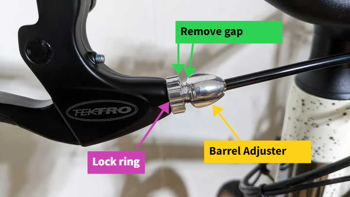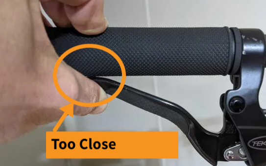 - If the lever comes close to touching the handlebars turn the barrel adjuster counterclockwise until it cannot touch while making sure the pads do not touch the rotor