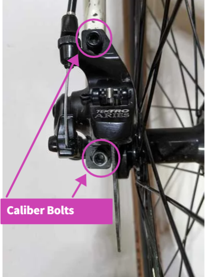 - With a 5mm allen wrench loosen the two bolts shown below. Do not remove them, there just needs to be enough room for the caliber to move.