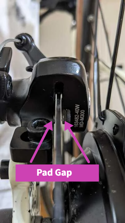 - Release the brake lever and check to make sure the gap is even between the pads, if not repeat the above steps till they are as shown below